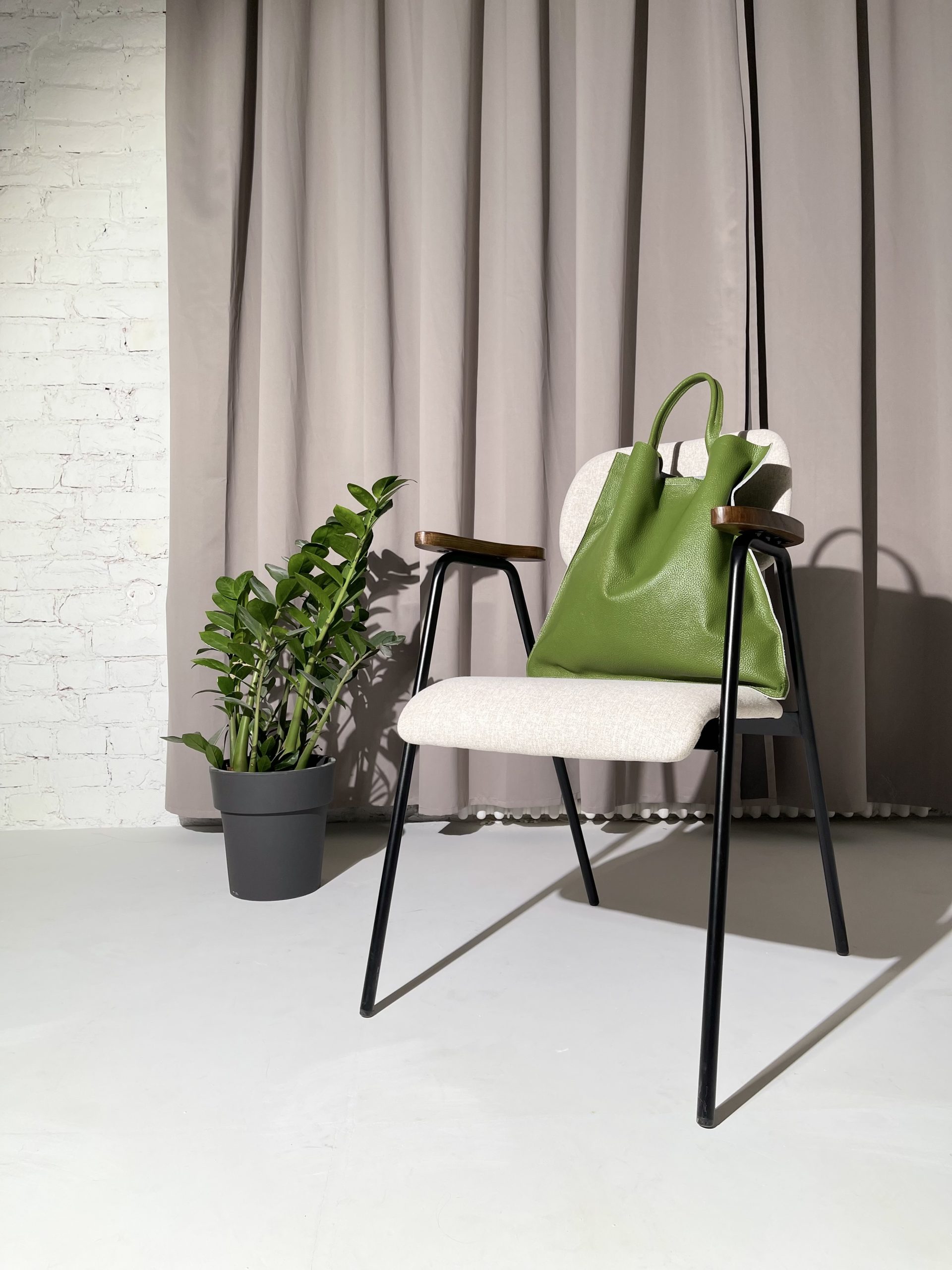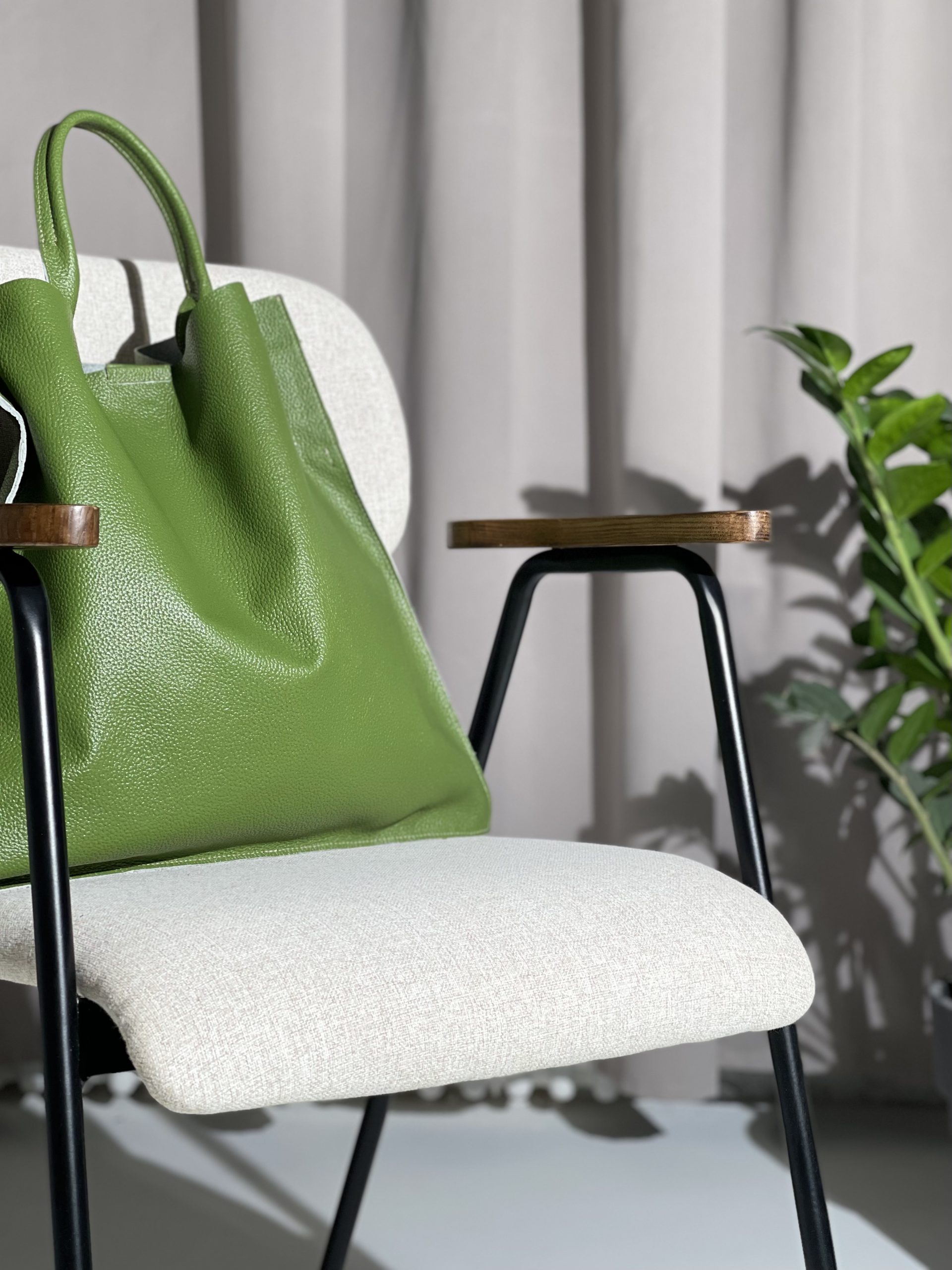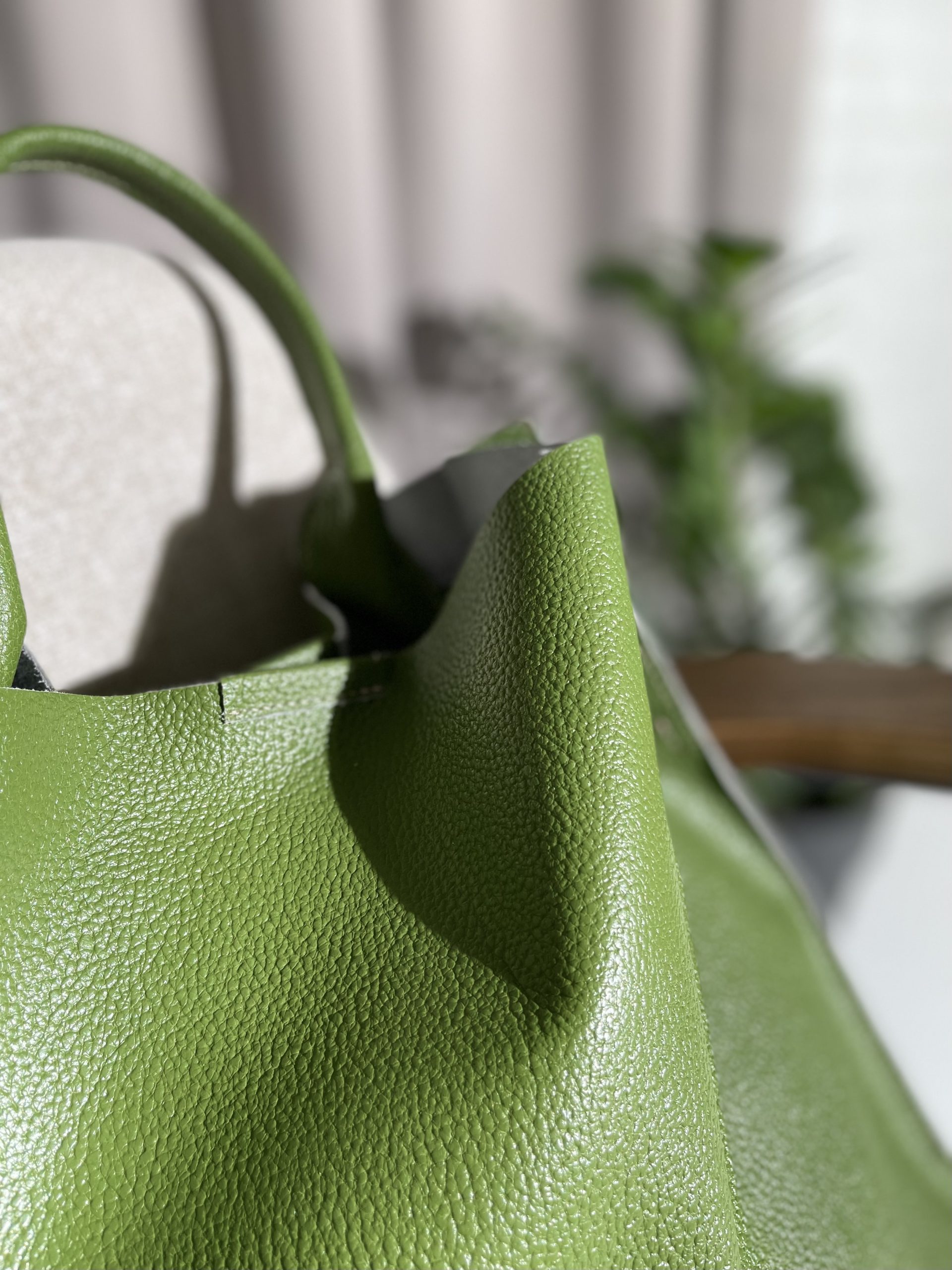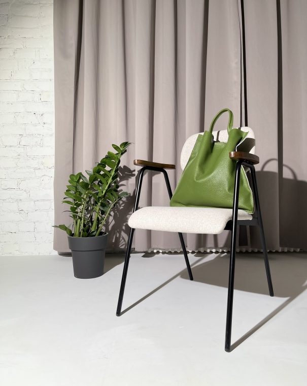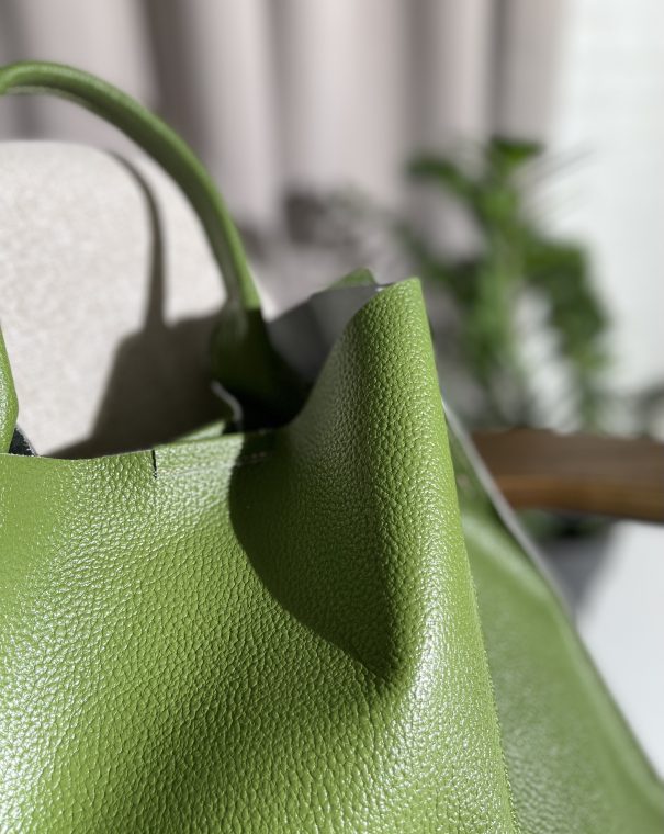 Эффектный шоппер выполнен из натуральной кожи и закрывается на магнитную кнопку.