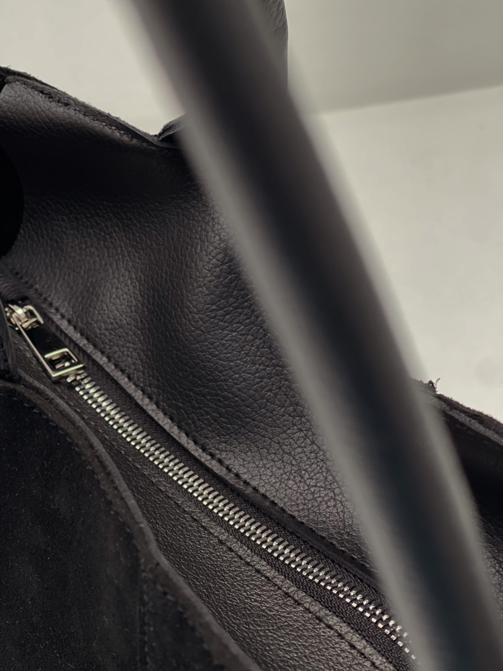 Сумка закрывается на молнию. Внутри одно отделение с органайзером на молнии.