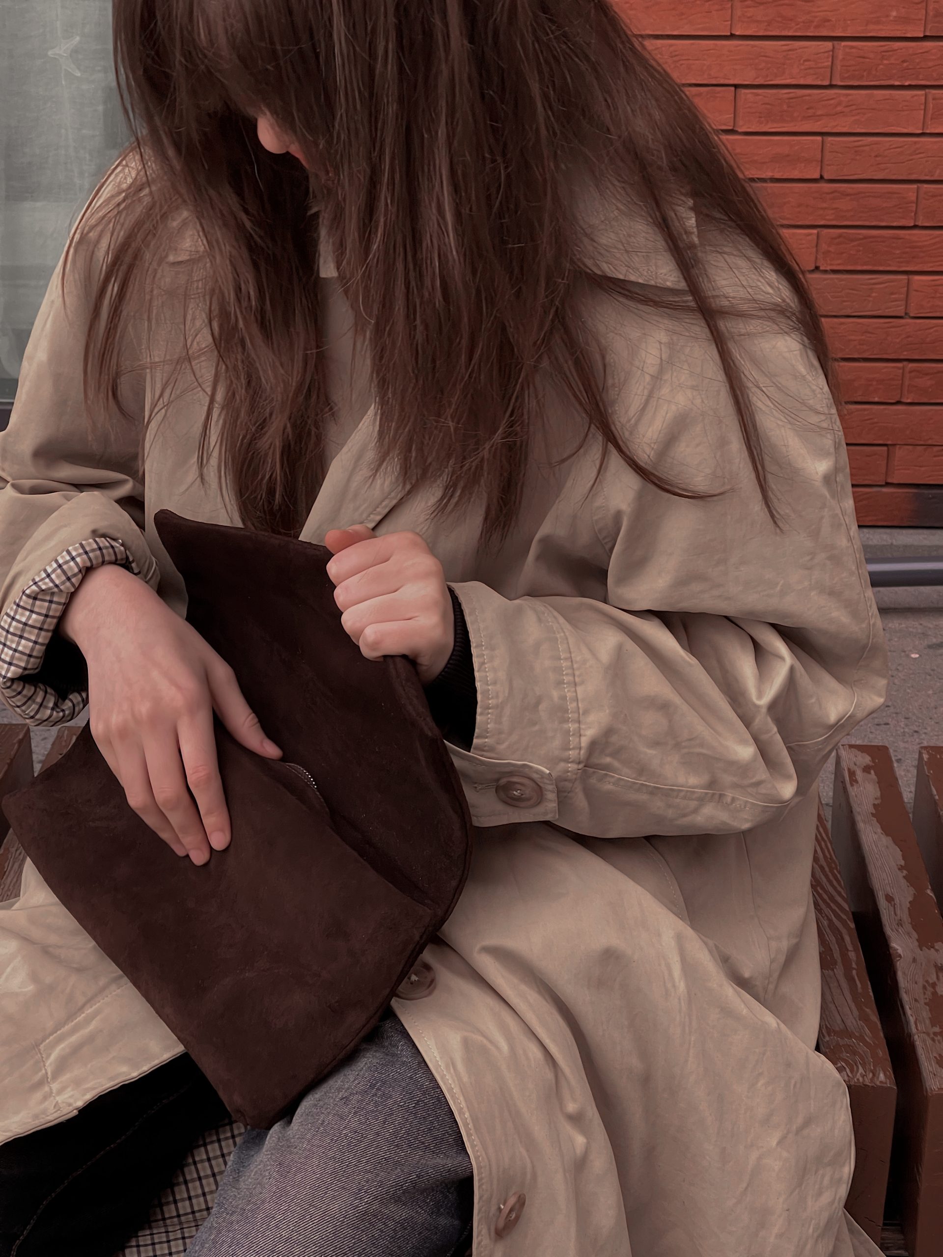 Эффектная сумка Клео выполнена из натуральной замши и закрывается на молнию.